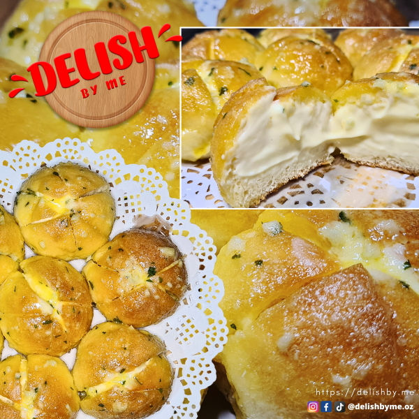 These delightful mini buns are twice baked with gooey cream cheese fillings and dipped in creamy garlic butter sauce. A sure hit with the crowd!
