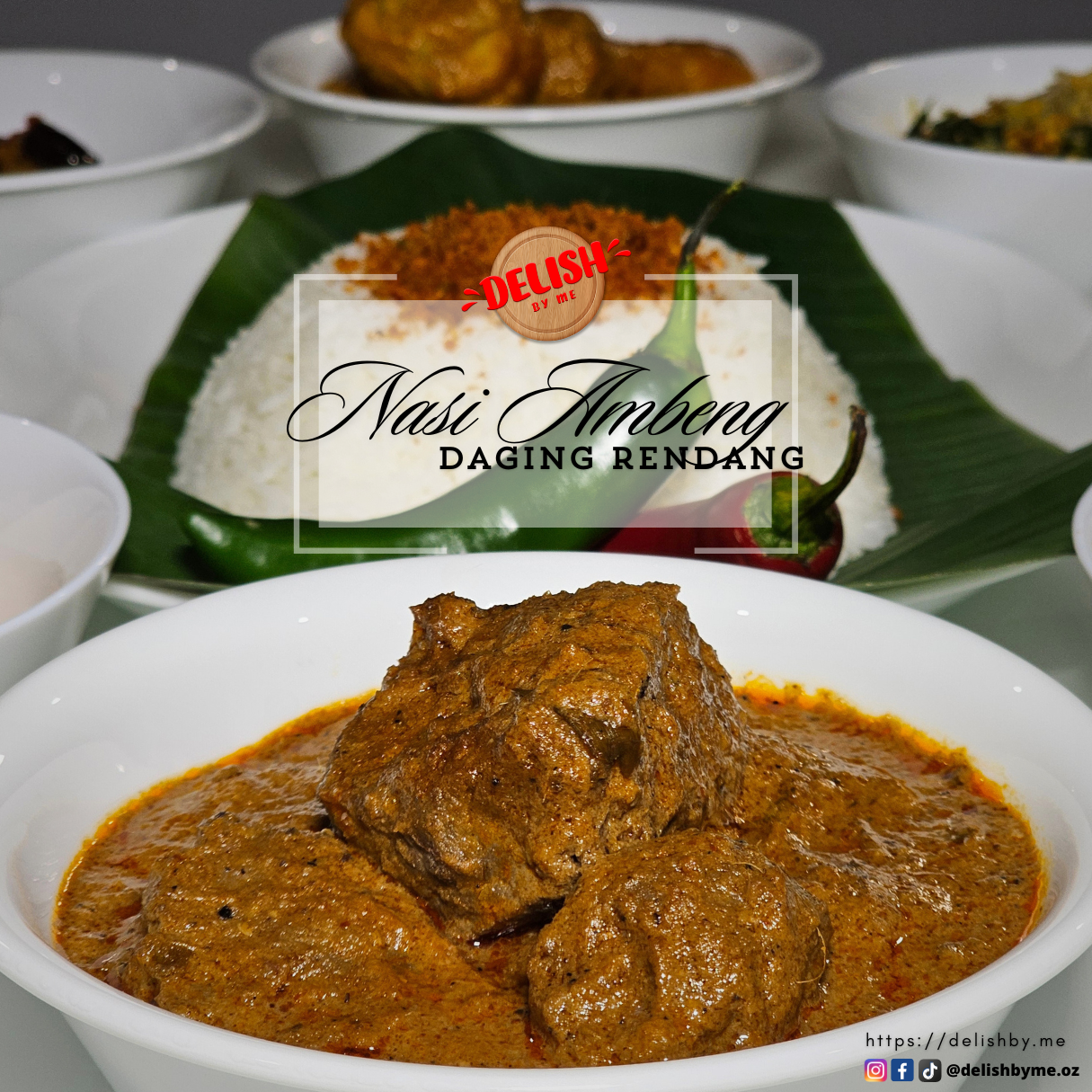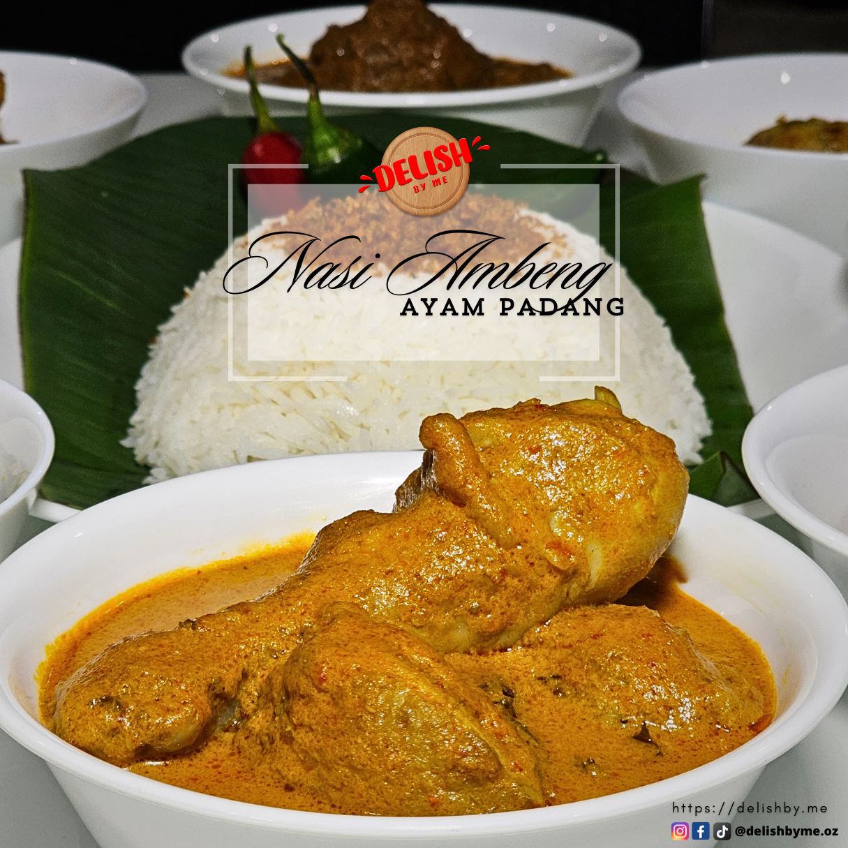 Dishes included - Ayam Padang (Chicken) or Daging Rendang (Beef) Gravy, Urap Pucuk Ubi or Kangkong, Serunding, Tempeh Goreng, Paru Berempah, Sambal Goreng, Sambal Belacan, Terung Belado and Begedil.